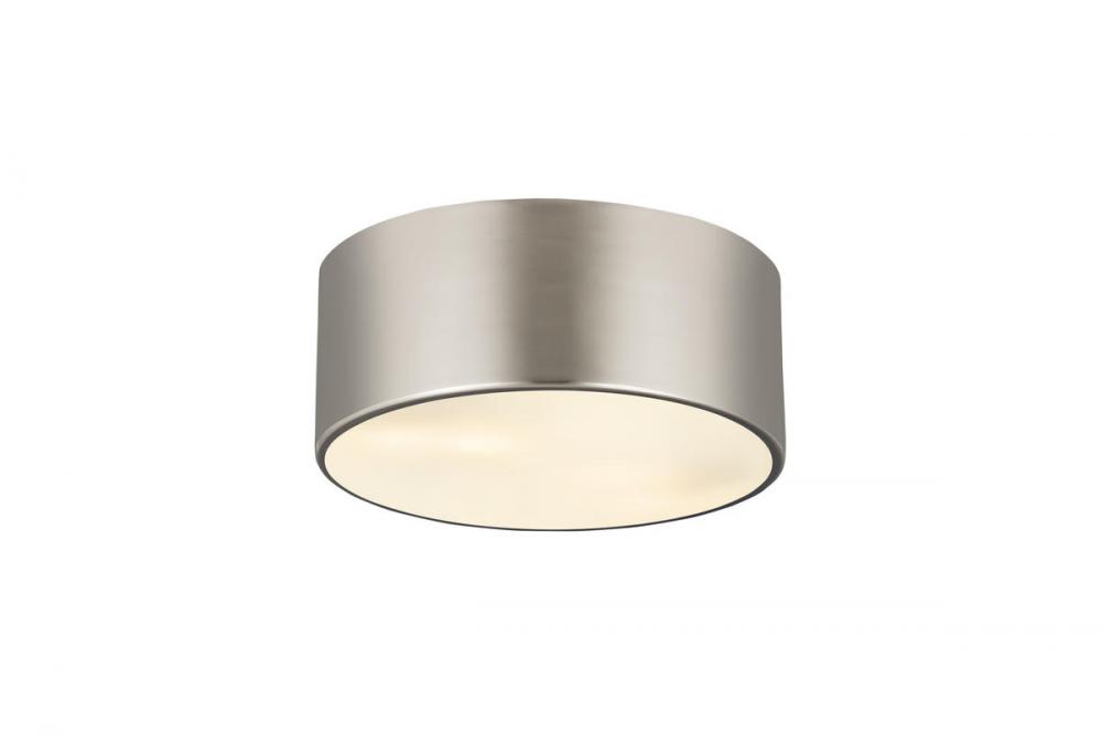 Elegant simplicity offers a minimalist design that captures attention, making this contemporary flushmount metal drum two-light ceiling light a versatile selection. This light from the Harley collection is perfect for casual, easy living spaces, offering a sleek large-form silhouette with a shade made of brushed nickel finish steel. Bring industrial-inspired vibes to a kitchen, dining space, or hallway with this tasteful fixture.
