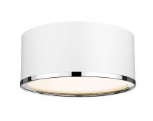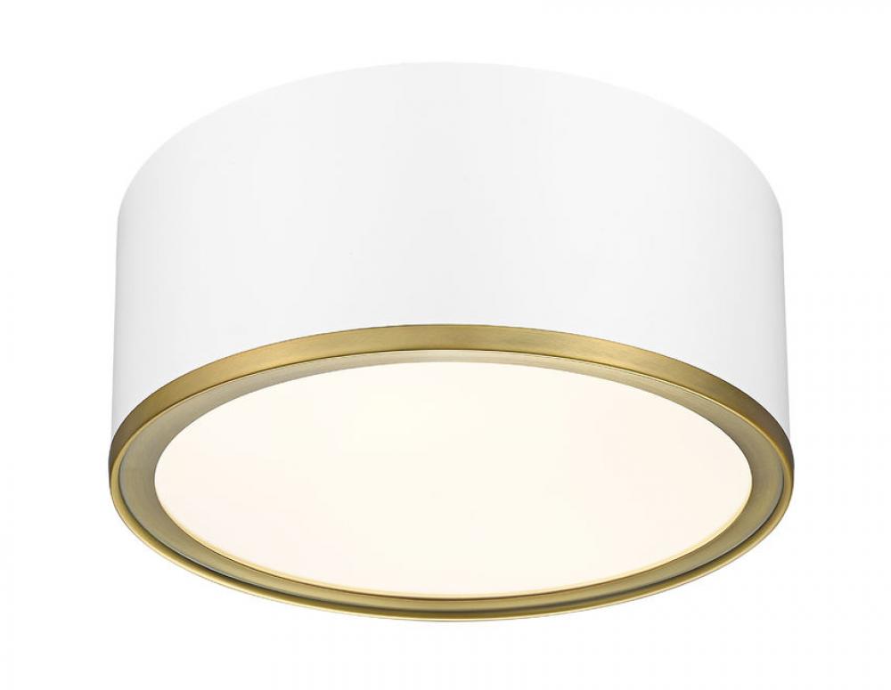 This two-tone metal flush mount light presents a sleek and smooth impression. Perfect for a hallway, home office, or small foyer, this matte white lamp with rubbed bass trim is simplistic yet stylish.