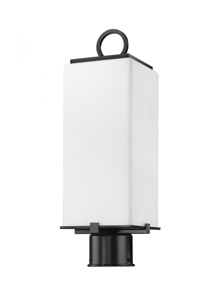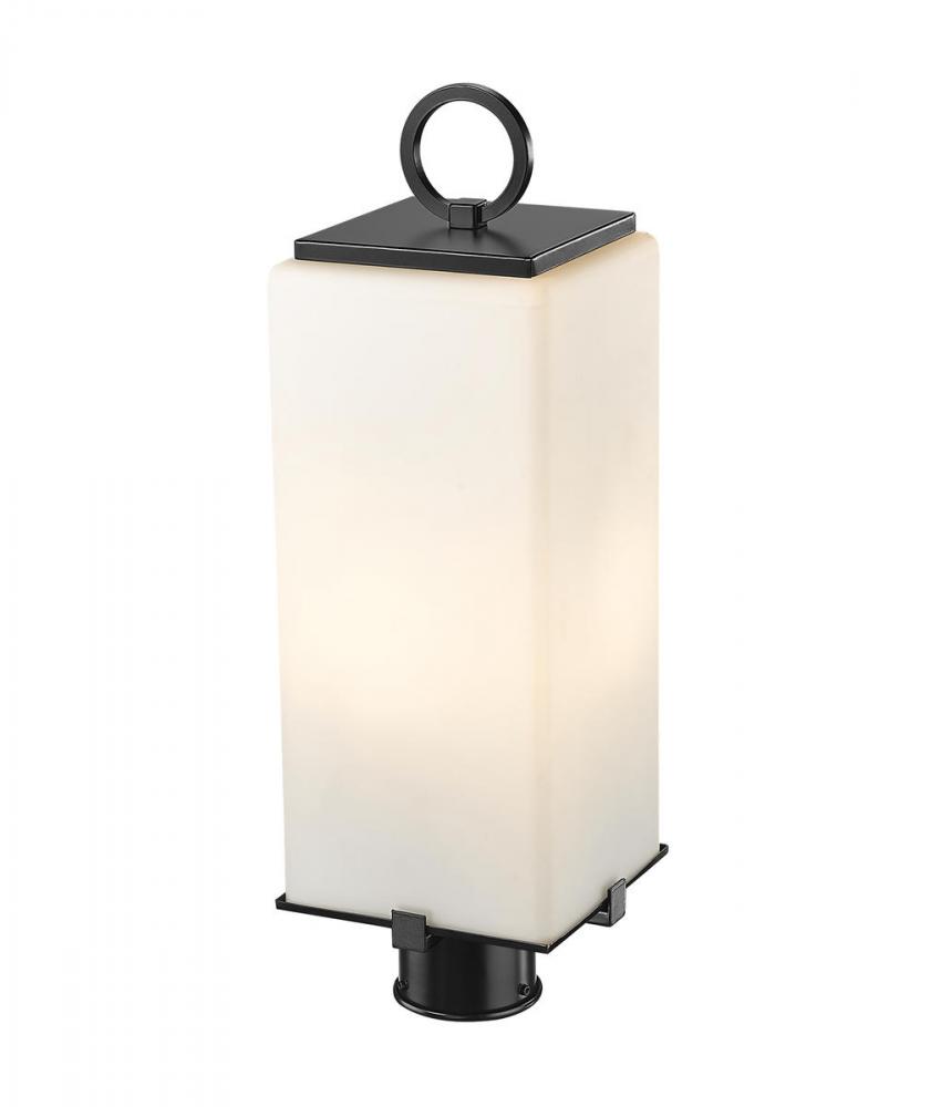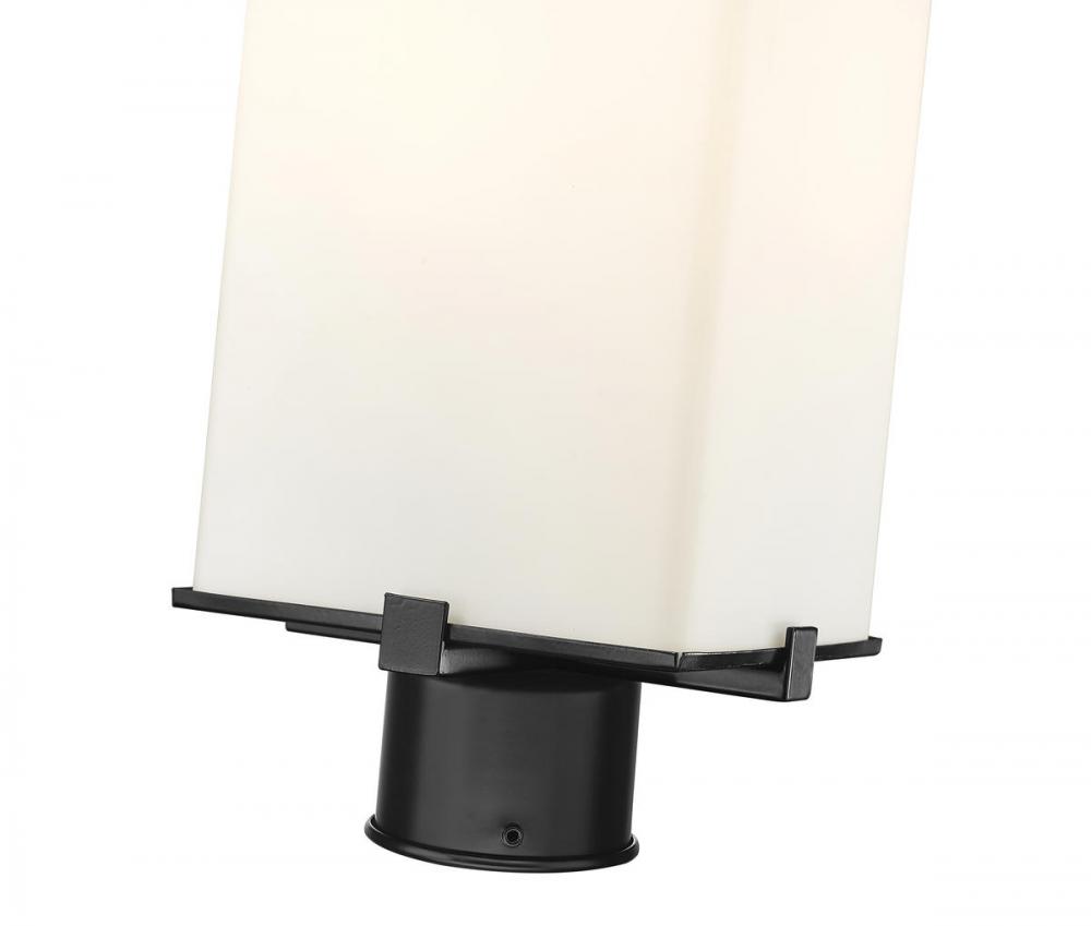 A charmingly simple two-light outdoor post mounted fixture made from steel boasts a black finish. With a white opal shade with coastal and contemporary styling, making an eye-catching addition to any porch or patio.