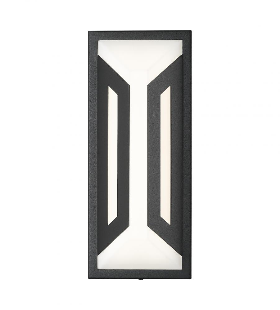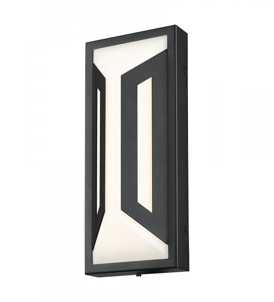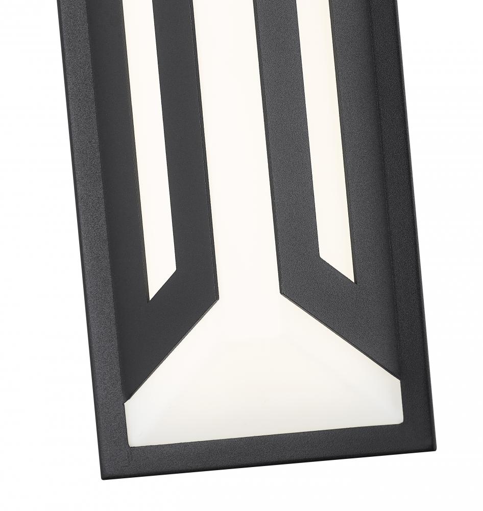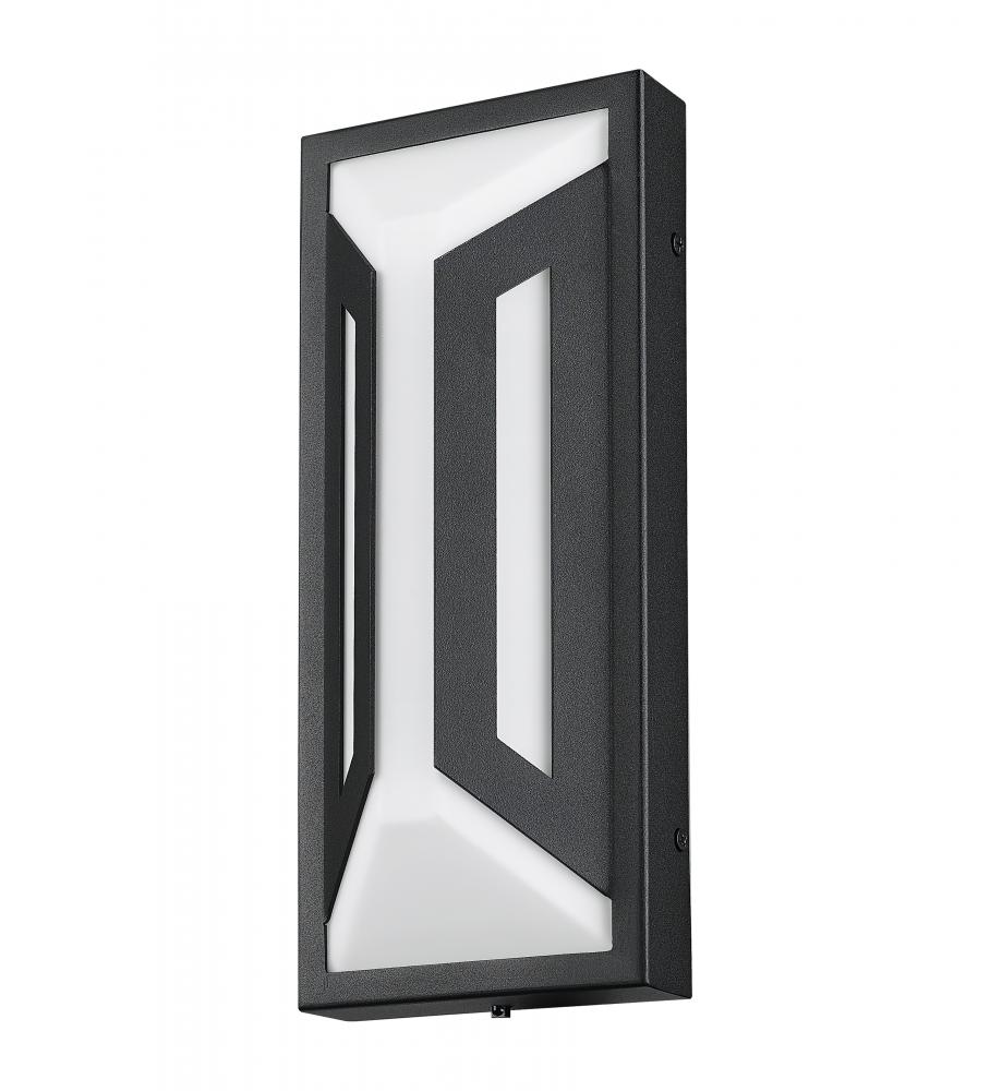 Crisp angles and lines merge to offer a dynamic design in outdoor lighting as a two-light outdoor wall sconce features soft matte black finish aluminum framing with an elegant white glass shade. This rectangular fixture is dimmable, creating custom levels of integrated LED lighting.