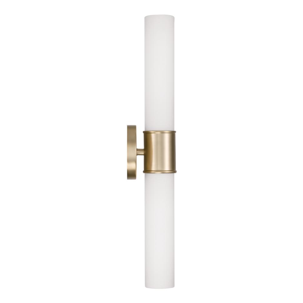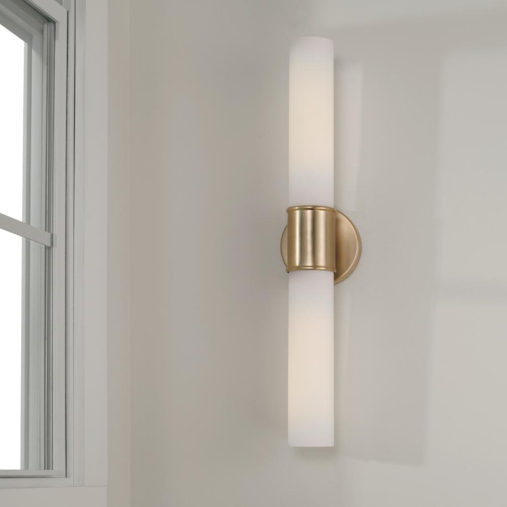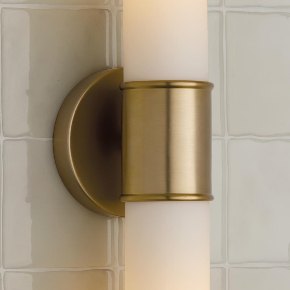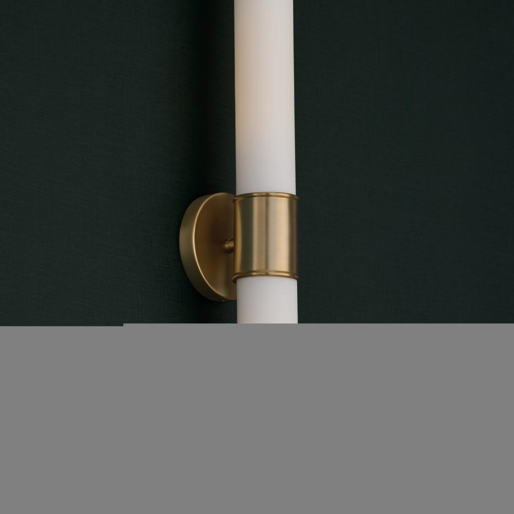 The elongated Soft White glass and Matte Brass finish bring sophistication to any space. Option to hang with a vertical or horizontal orientation.