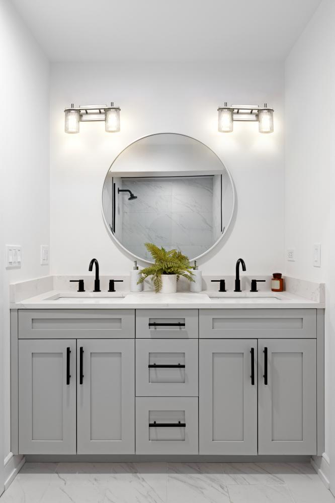 The Grayson vanity light demonstrates attention to detail with its clear wave glasswork with an interior white glass that evokes the serenity of waves. (Pro hint: the vanity can be used without the inner white glass for a completely different look) It is a