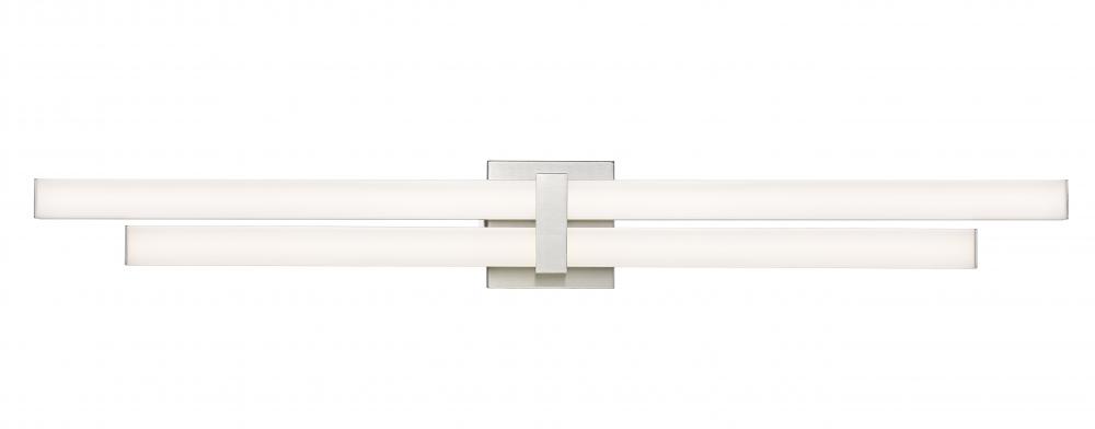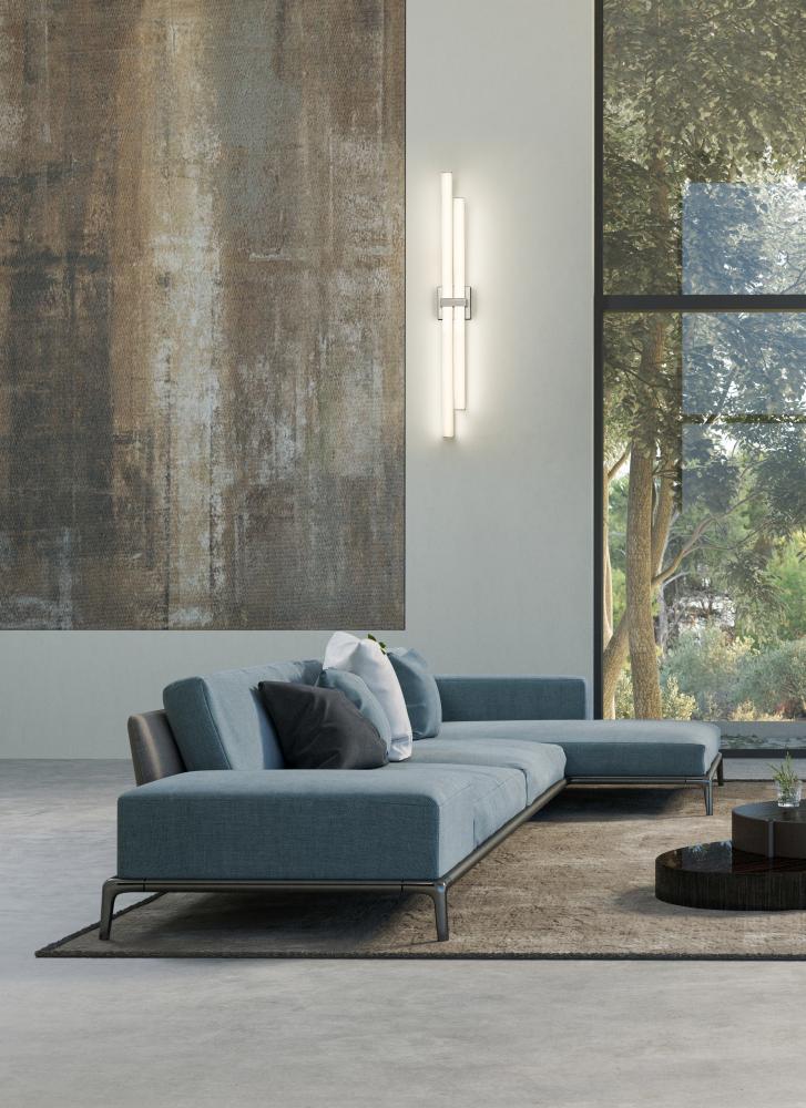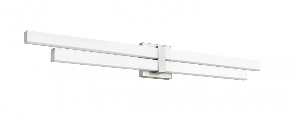 The Zane family of vanity lights is comprised of an asymmetrical stacked design that provides ample light and plenty of style. The choice of 18-, 25-, 32-, and 40-inch widths ensures that Zane will suit the most popular vanity sizes. Lamped with dimmable m