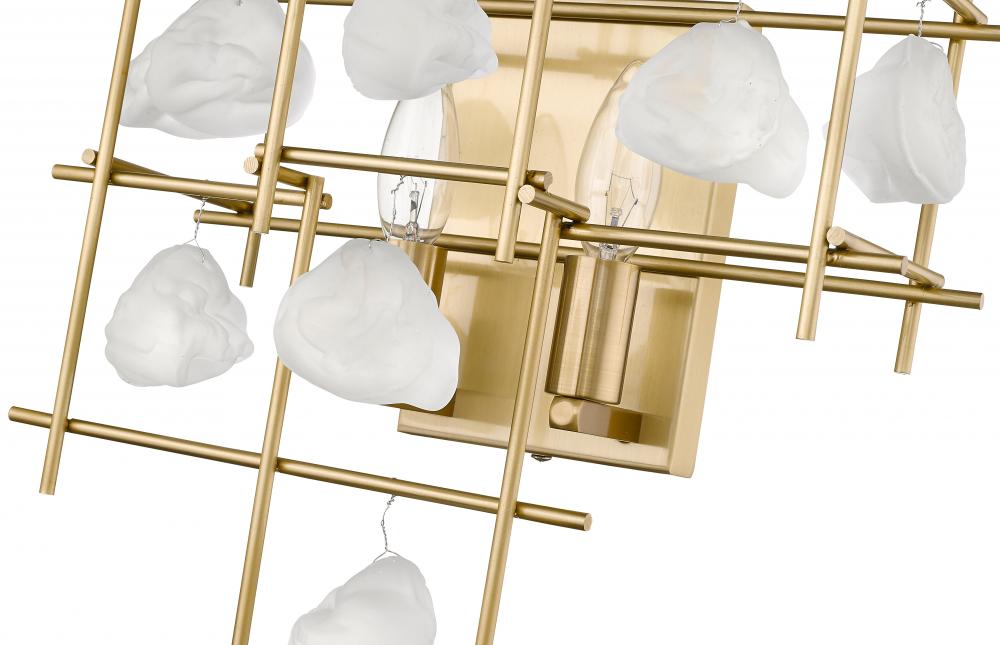 Light up a bedroom or powder room with the cool, contemporary allure of this aged brass wall sconce. An eye-catching array of linear metal accents surround two shining bulbs for a sophisticated design that radiates modern elegance.