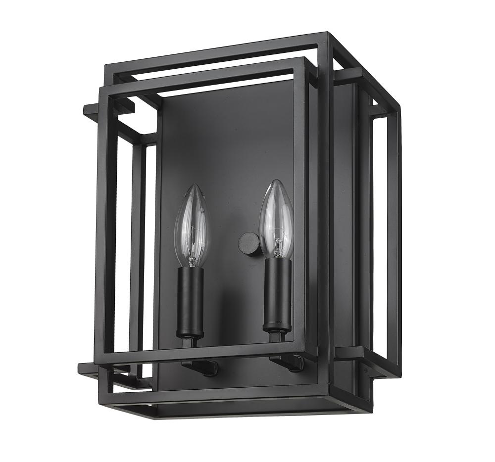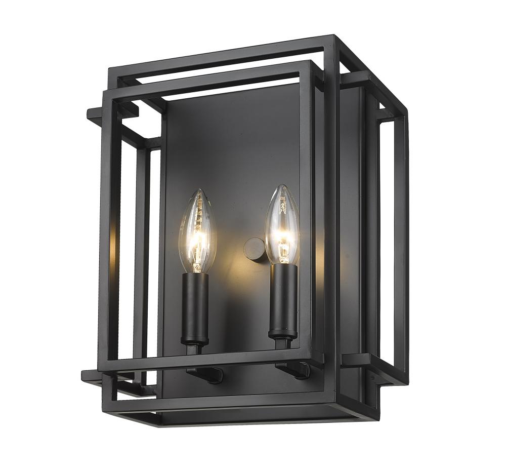 Refined architectural influences carry through in this large contemporary wall sconce, designed with an open, airy squared cage outlined with slim steel for a striking silhouette. This modern double light wall sconce also showcases exposed bulbs, making it a wonderful opportunity to incorporate flicking Edison bulbs for an industrialized look and feel to the space. Mount this grand modern wall sconce on the side of a powder room mirror or flank foyer artwork to welcome you home.