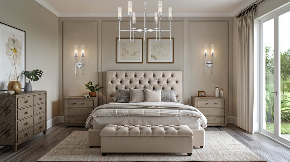 The Esme collection offers plenty of light in a compact silhouette. The slim, fluted clear glass shades help deflect glare while providing an elegant aesthetic. Available as single or double-arm wall sconces with a diamond-shaped backplate or in 5-, 6-, an