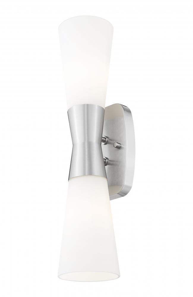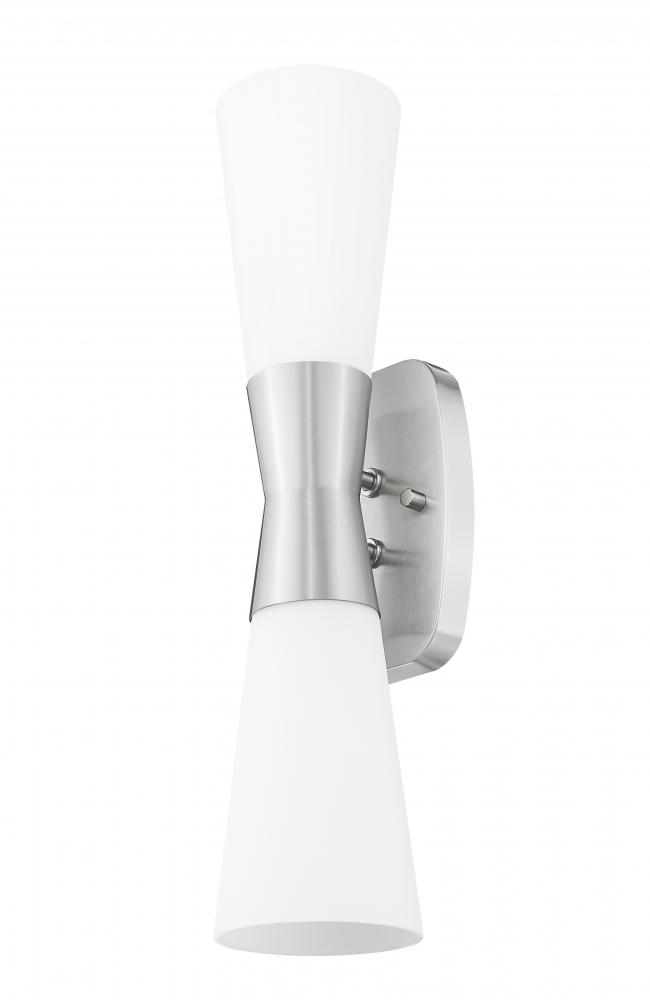 The shapely hourglass silhouette of the matte opal glass shade on the Emrys collection vanity fixtures is accented by a bold metal cuff in a finish choice of Brushed Nickel, Polished Nickel, Matte Black, and Modern Gold to complement most plumbing fittings
