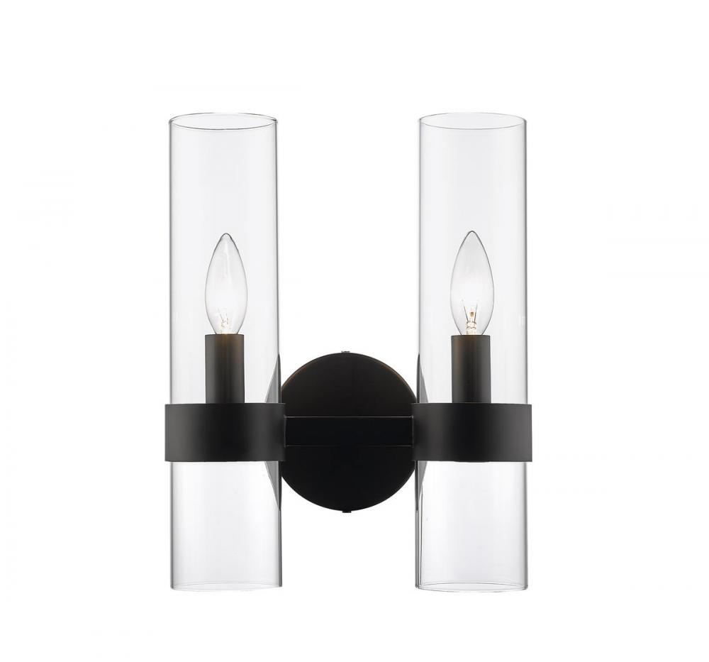 This two-light wall sconce creates a simple yet stylish look in any modern space. Contemporary vibes infuse an easy-living attitude in the Datus matte black two-light sconce, yielding a sleek design featuring slender clear glass cylinder shades mounted to a matte black finish solid steel frame. Dress up and illuminate a hallway, bath space, or main living area with this sconce with a minimalist yet impressionable flavor.