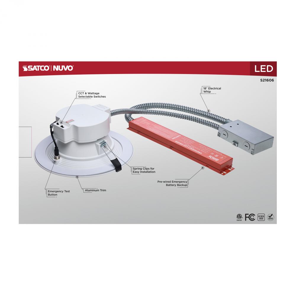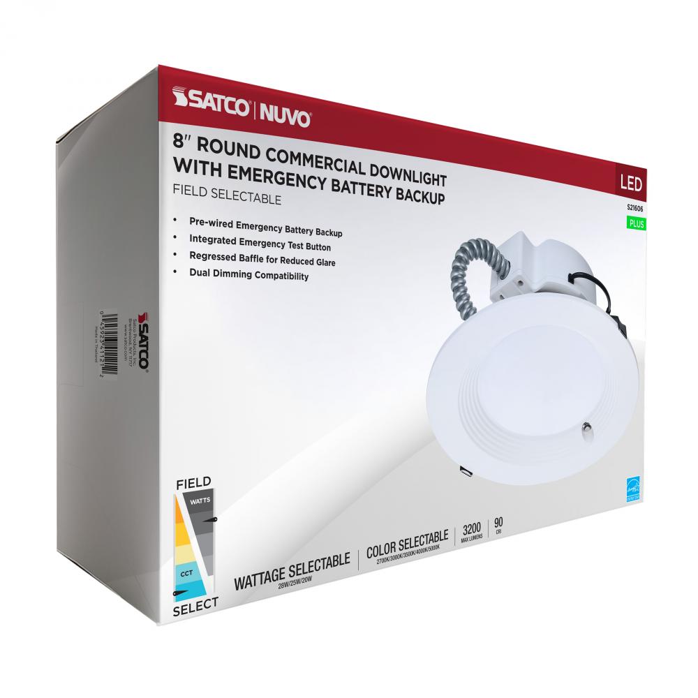 SATCO NUVO's Plus Series LED Commercial Downlight, S21606, with Emergency Battery Backup delivers exceptional performance and versatility for today's remodel or new construction commercial environments. This 8-inch round fixture features field-sele