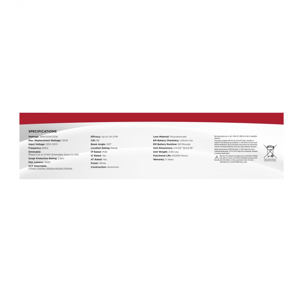 28W Field Selectable LED 8-Inch Commercial Downlight; Dual Dimming; Integrated Emergency Driver;