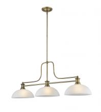 The perfect combination of classic and contemporary style, this three-light ceiling light is stylishly eye-catching. Warm heritage brass creates a radiant glow with a hint of sleek softness.