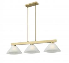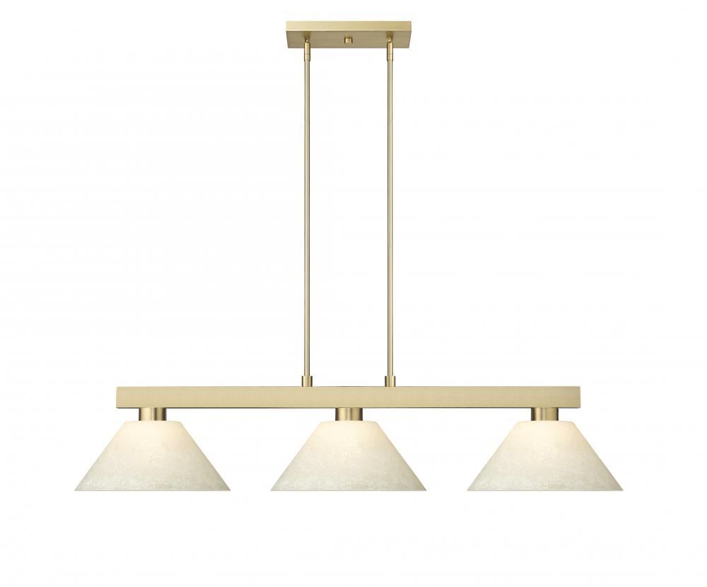 Elevate your game play with a modern three-light billiard light from the Cobalt collection. Its suspension framework and vertical hanging bar receive a timeless modern gold finish thats warm and inviting, perfect for lounging with the family or entertaining friends. Three lights are shaded in glass with a golden mottle finish, offering soft, diffused illumination perfect for myriad games and activities.