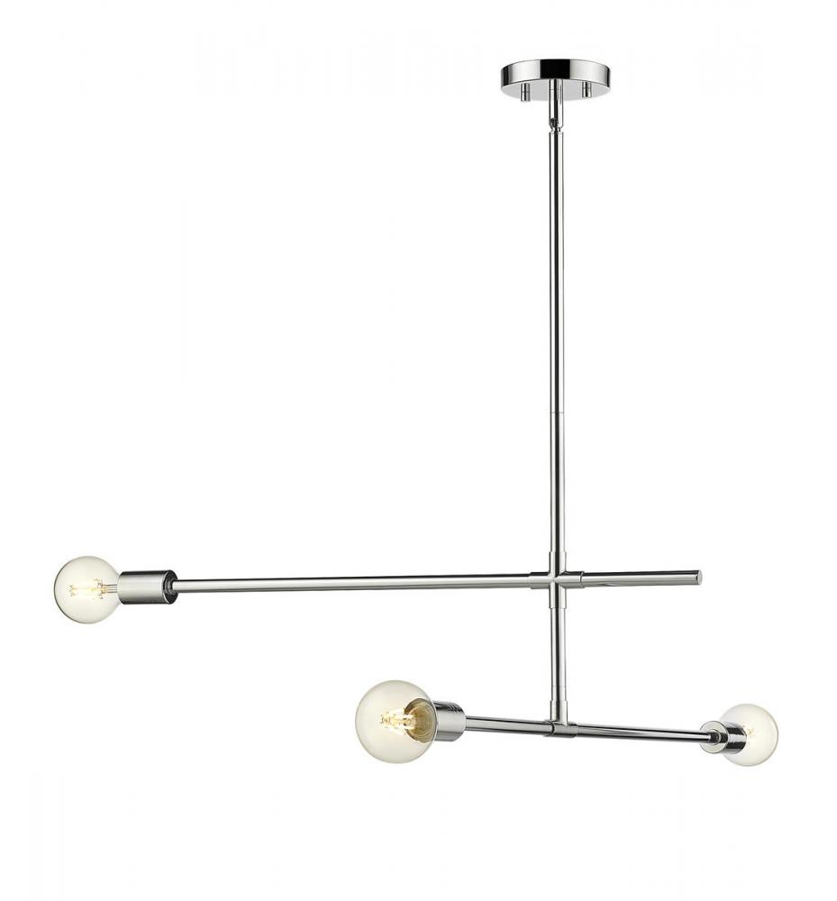 Toe the line on sleek modernist style with a fixture that becomes a primary element of custom d?cor. This three-light chandelier from the Modernist collection dazzles with a slightly asymmetrical linear design featuring parallel and perpendicular frames crafted of chrome finish steel. Choose stylish bulbs to customize a dining or living space, soaking up the striking contemporary character of this classic fixture.