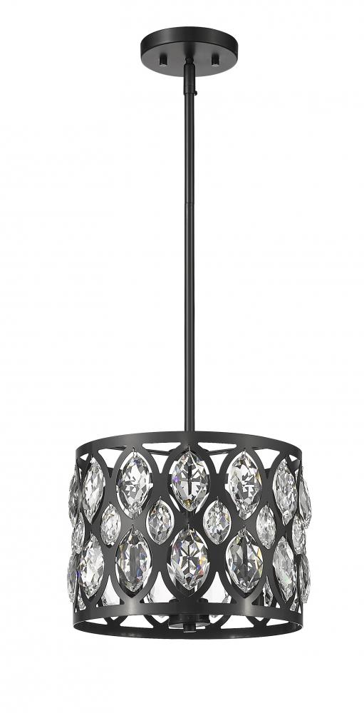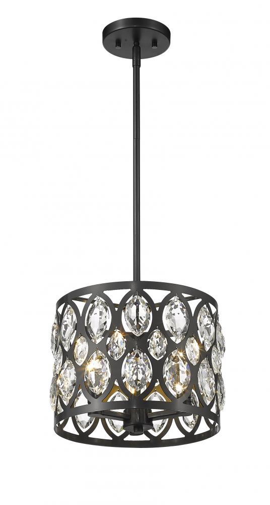 From the Dealey collection comes this elegant and sophisticated three-light chandelier. This chandelier features a matte black steel shade with a striking ellipse punched pattern set with glimmering clear crystal pendants that add a touch of tradition and glamour. Hang this chandelier above a table in a contemporary dining room or in an entryway foyer for a dramatic look.
