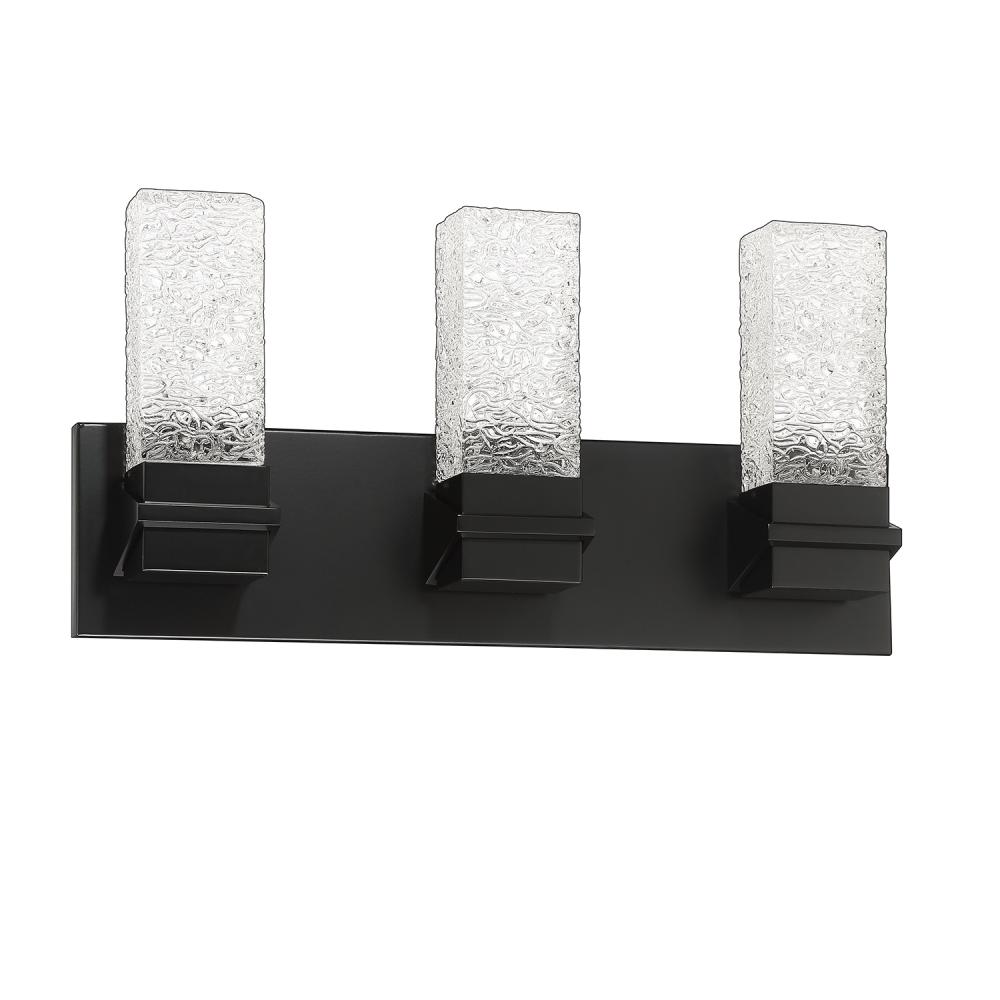 ICE 3-Light LED Bath & Vanity Light with Rectangular Water Grain glass in a Black finish