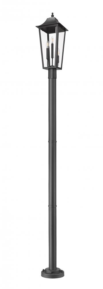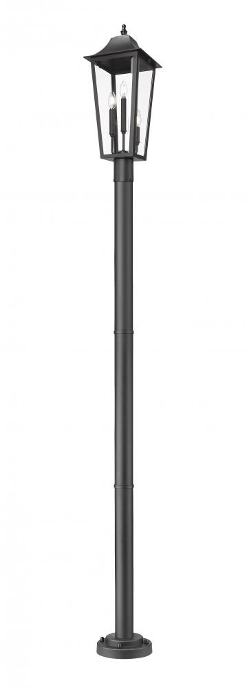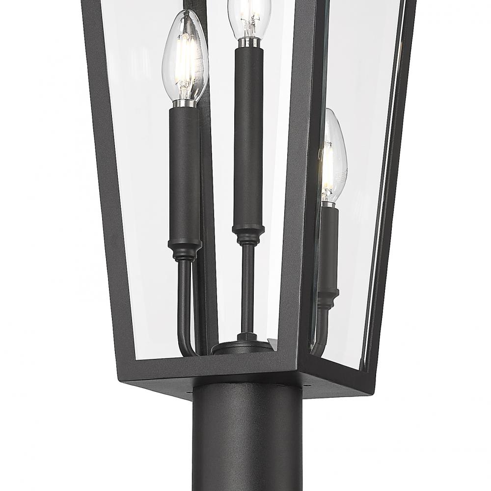 Put finishing touches on a front entry or walk with the long, lean profile of a traditional outdoor post mount lantern. Delivering bright illumination with three lights, it boasts a crisp Coastal black finish thats designed for durability on a stainless steel frame. Clear beveled glass panes create an inviting ambiance, offering a glowing touch to your landscaping and exterior decor.
