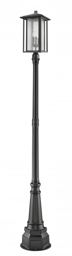 Feast your eyes on the classic ornate detailing of this three-light outdoor post mounted fixture. Sophisticated craftsman-style elements showcase the beauty of a black finish aluminium body and dual frame, and a romantic seedy glass shade that protects a candelabra style bulb base.