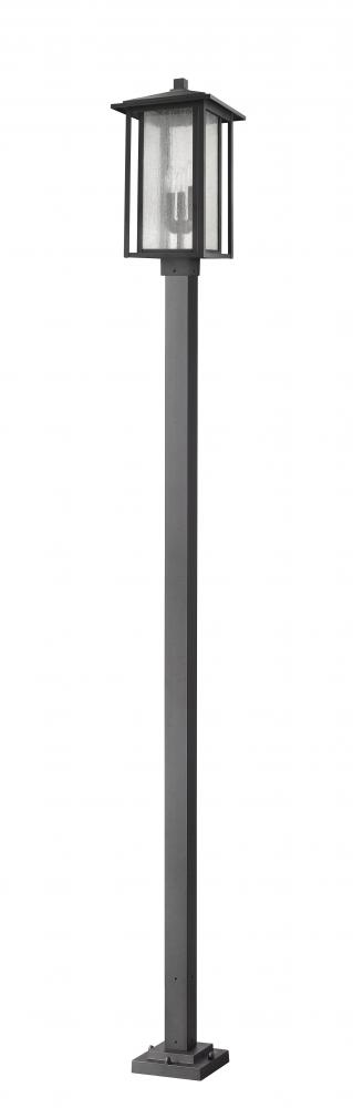 Designed with artistry in mind, this three-light outdoor post mounted fixture delivers a fresh craftsman look to any exterior yard or homefront. Romantic seedy glass creates a stylish shade over a candelabra-style bulb mount, and a durable aluminium frame with a sleek black finish completes a tasteful, sophisticated aesthetic.