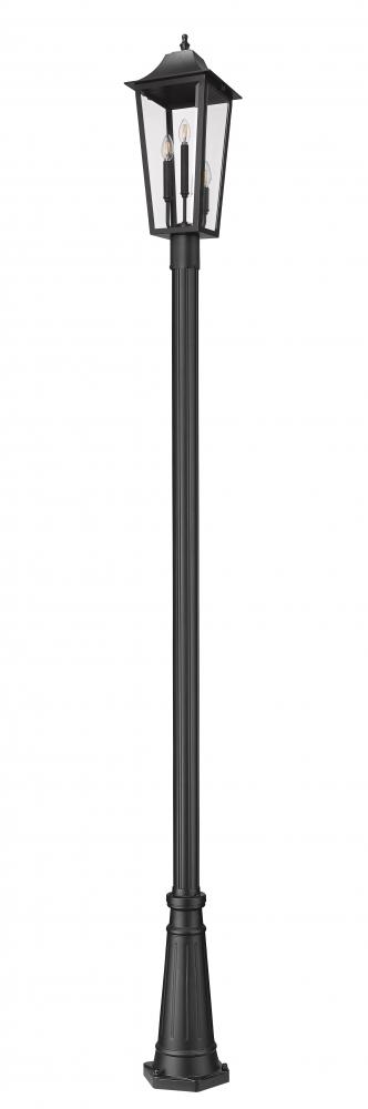 Tall and refined, this traditional three-light outdoor post light creates a bright, inviting touch for your landscaping. It?s the perfect solution for large homes, offering grand scale and inviting simplicity of design. A durable Coastal black finish pairs with clear beveled glass for excellent illumination.