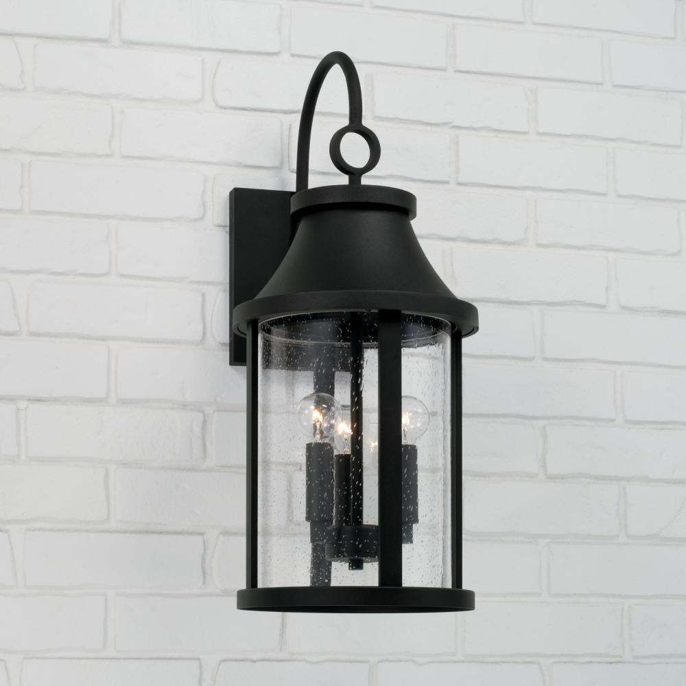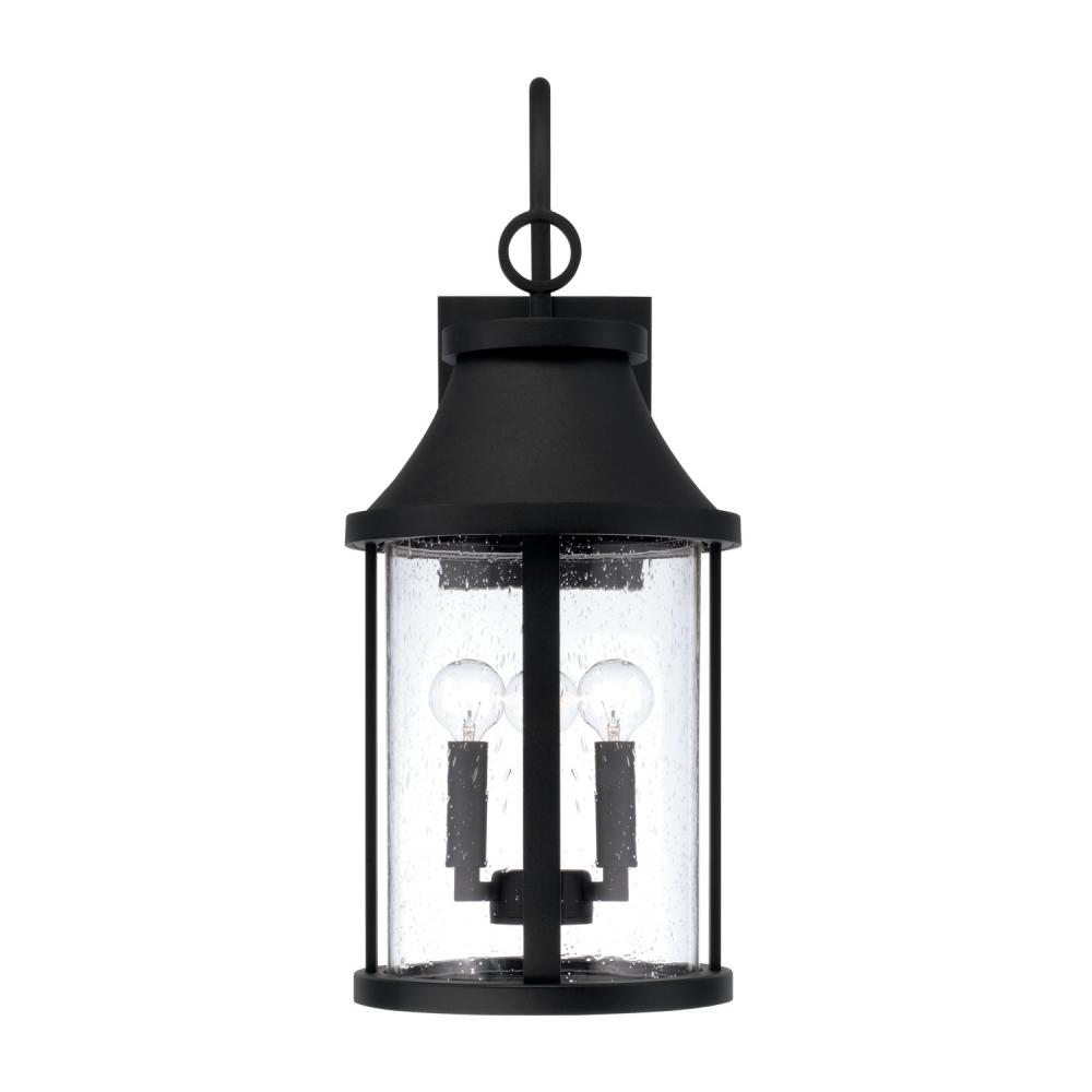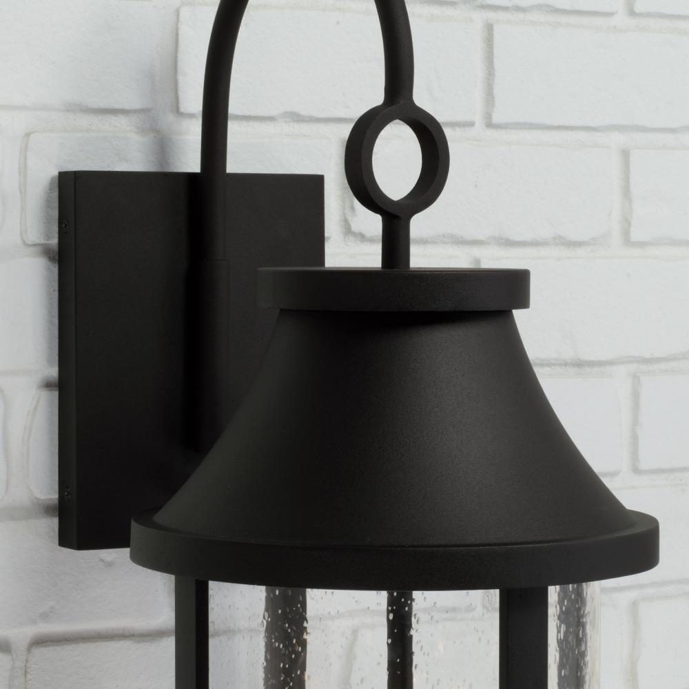 Circular forms and seeded glass create the Bridger Wall Lantern. The curved cap lines and ring detail on top bring all-around charming style, rounded out by our signature Black finish for a look that punctuates any outdoor space. Part of our Rain or Shine Series and backed by our five-year warranty.