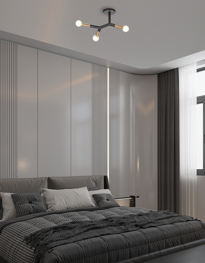 3 Light Semi Flush Mount, Matte Black & Aged Brass