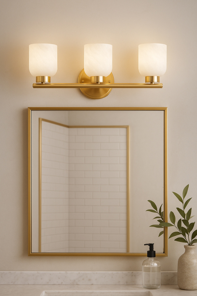 3 Light Vanity, Aged Brass w/ Faux Alabaster