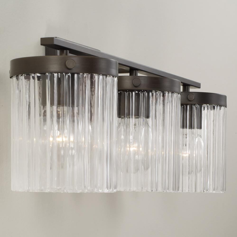 DETAILS: Unique beveled fluted glass illuminates stunning texture while the Oil Rubbed Bronze finish creates a refined aesthetic.
