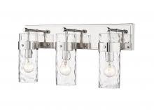 Equal parts stylish and functional, this three-light vanity fixture is alluring. The cylindrical glass shade is accented with a ripple texture in a romantic design. Steel construction in a rubbed brass finish allows it to pair with many types of decor ranging from farmhouse to modern.