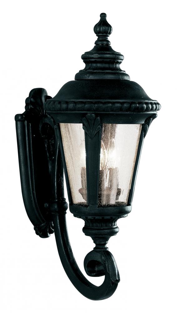 The Commons 25" Wall Lantern combines Tuscan design themes with functionality. The Commons Collection offers both accent lighting and supplemental area lighting as it stands out and showcases the outdoor décor. Signature ornamental details from this collection include braided crown trim, leaf window accents, and Clear Seeded Glass.