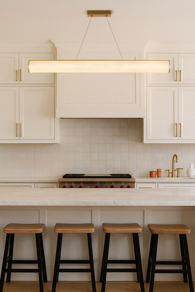 30W Horizontal Pendant, Aged Brass w/ Marble Alabaster Shade