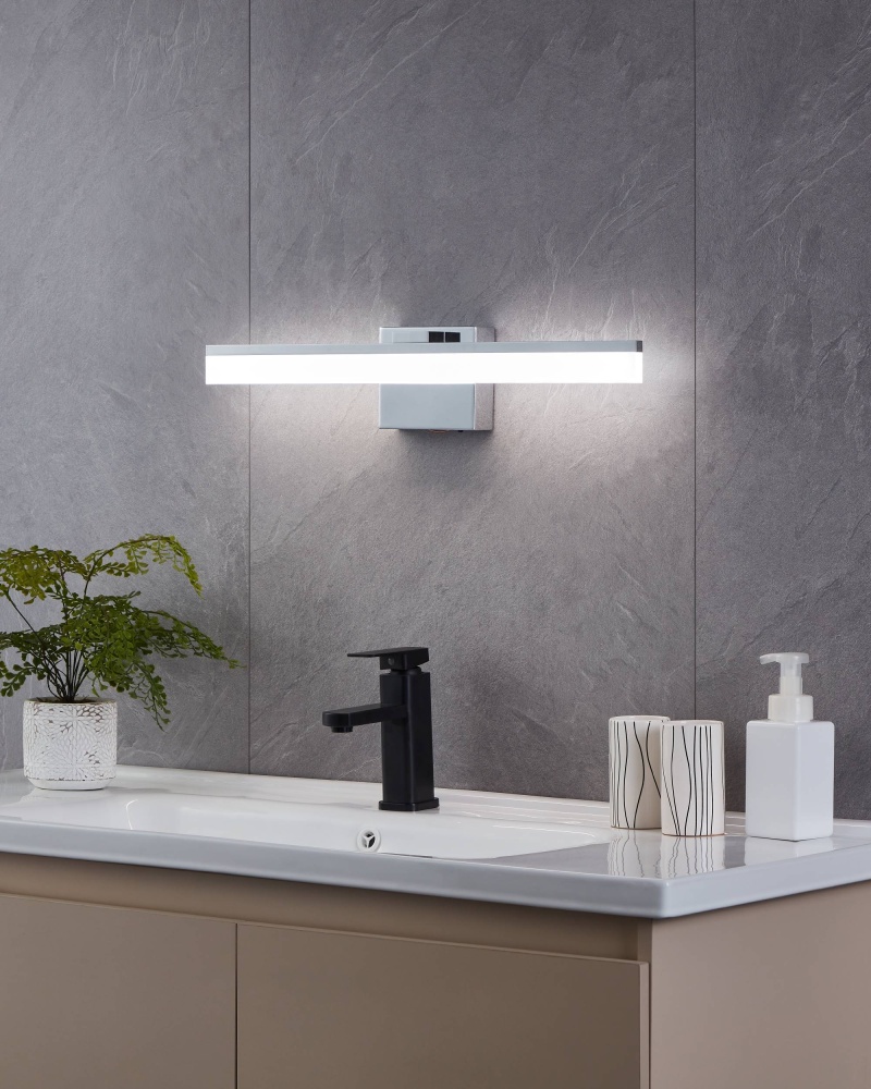 The LED Palmital 1 - Bath/vanity light features a chrome finish w/ a satin acrylic shade. With the 3 cct switch on the backplate you can determine the amount of light needed in your space. Sleek with a modern design this bath/vanity light will be a great addition to your home design