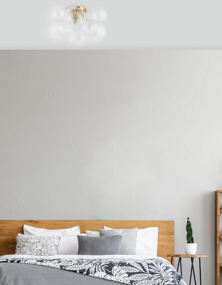 3LT Flush Mount, AGB w/ CLR Spiral Glass