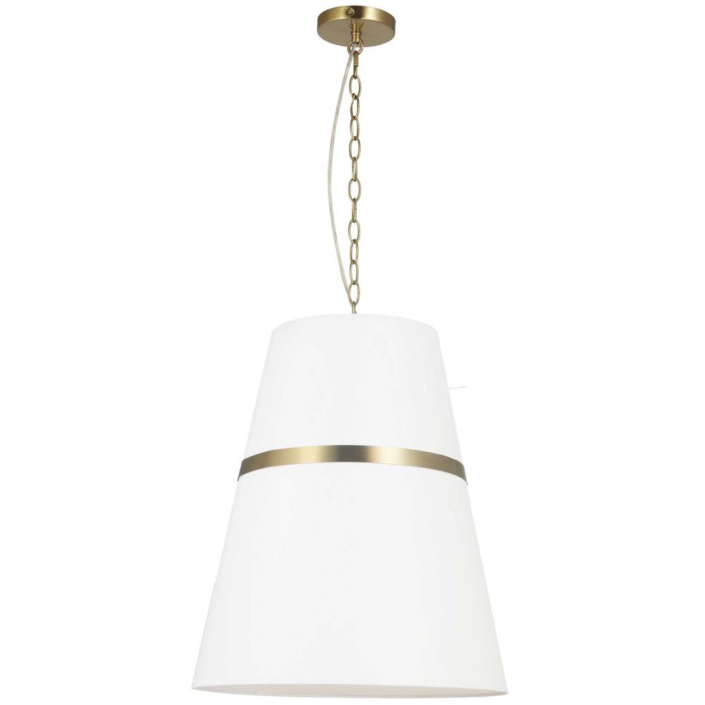 The Symphony family of lighting features a sophistication and sense of style that evokes haute couture. It blends simple shapes and principles into an eye-catching design. The metal chain drop leads to an unobtrusive frame inside a chic white shade in a tapered drum shape. A band of matching metal around the tapered end of the shade creates an eye-catching contrast. Available in pendant or flush configurations, it's a sleek and fashionable look that will draw attention to the furnishing around it in your mid-century to contemporary home.