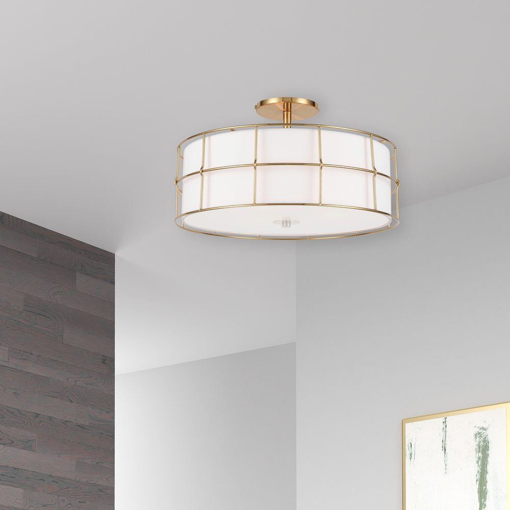 Distinctively different, the Alcala family of lighting fixtures feature a contrasting geometric design that draws the eye. The interplay of rounded form and a metal grid housing will soften the effect of minimalist furnishings, and add a textural element to your décor. The metal body comes in your choice of shimmering aged brass or matte black finishes, with a white fabric shade for warm, skin-friendly lighting. With its unique sense of style, Alcala will work with mid-century to ultra-modern décor. Form and function meet with panache in the Alcala family of lighting.