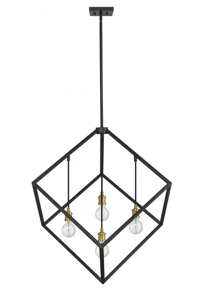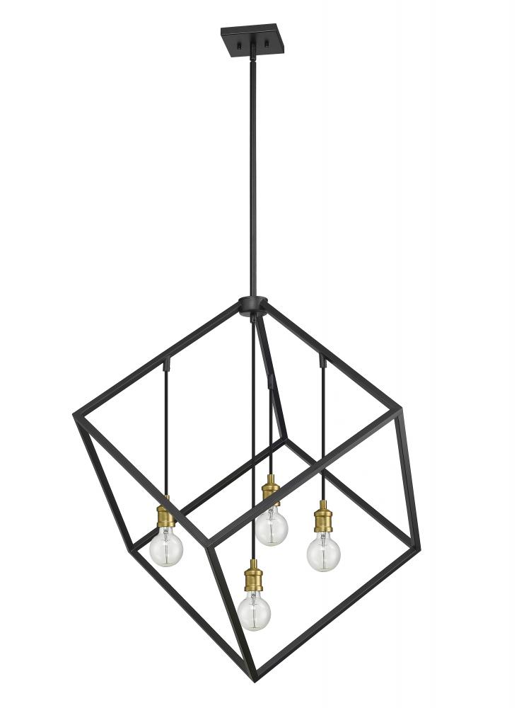 Enjoy the modern edge that this large two-tone four-light pendant adds to your home. It features a bronze and olde brass finish with the lights inside a single large cube-shaped shade for a dynamic look that energizes any space. Its a vibrant light designed to transform any dining room, hallway, bedroom, or kitchen.
