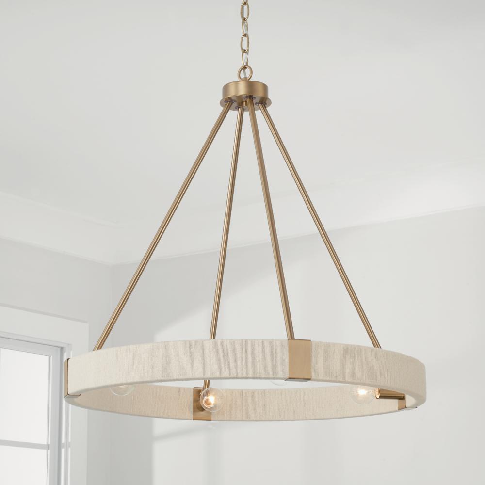 DIMENSIONS: Overall: 26"W x 25.5"H; Adjustable Hanging Height: 29" - 151.5"; Includes 120" Chain; 180" Wire.