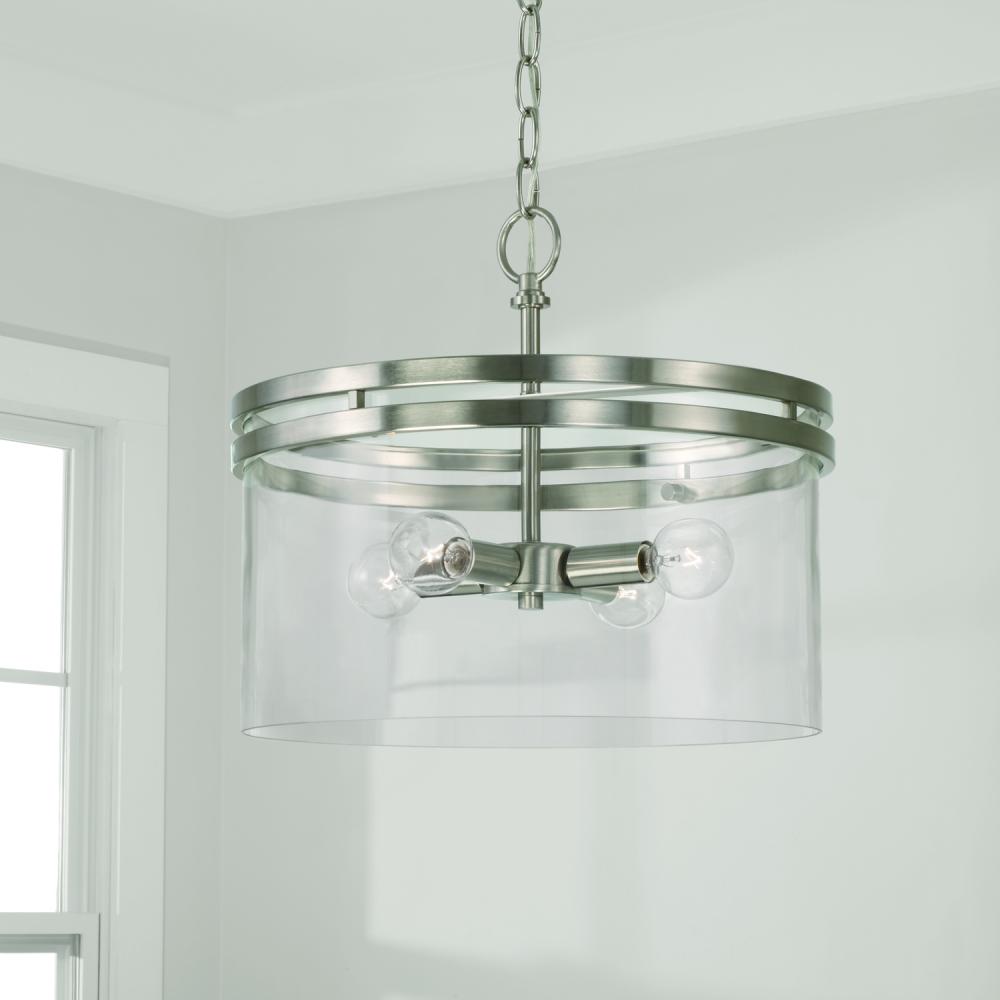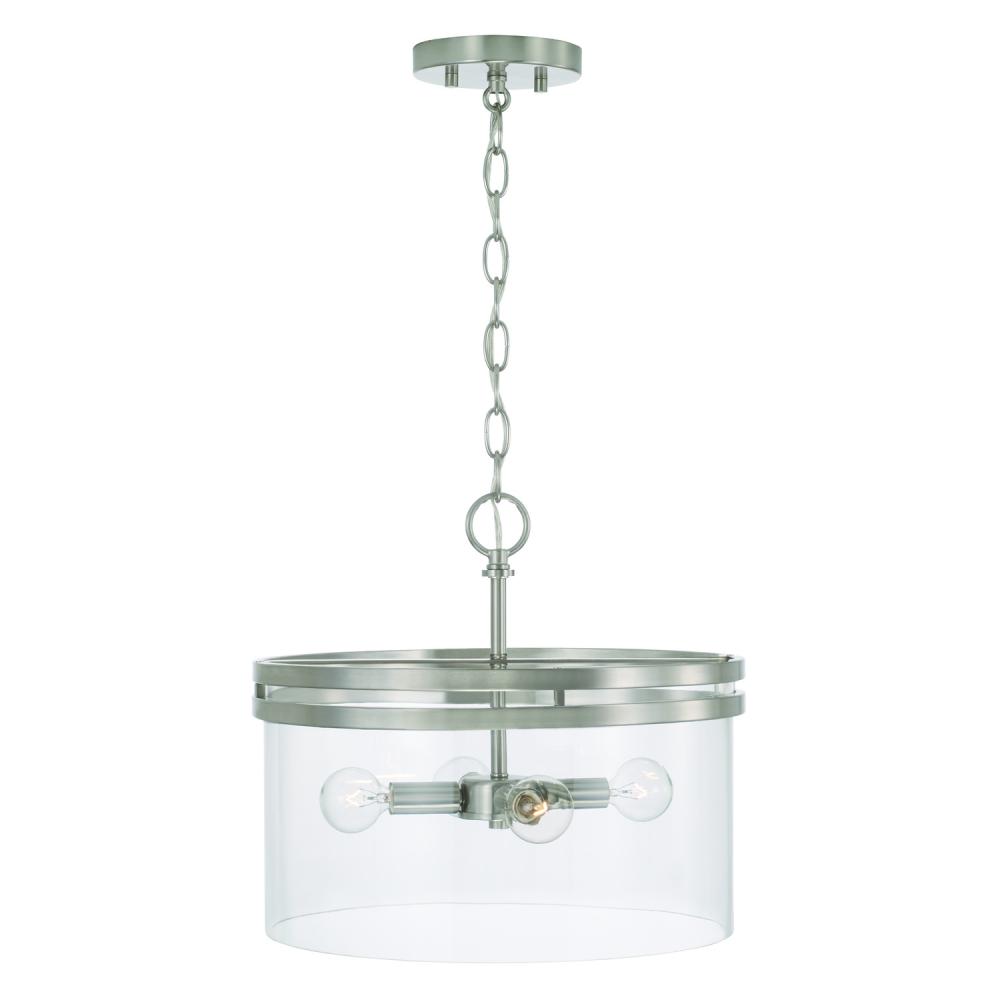 14.5"W x 12.75"H 4-Light Dual Mount Pendant or Semi-Flush in Brushed Nickel with Clear Glass