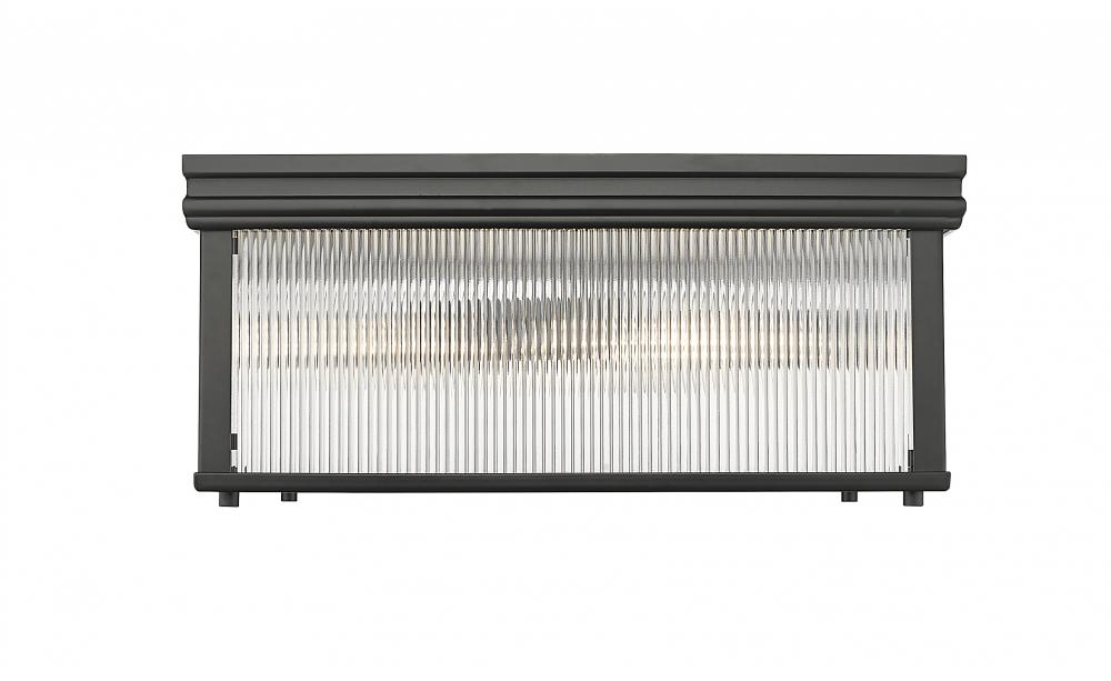 Transformed with the choice of architectural ribbed glass, this modern four-light flush mount ceiling light showcases clean lines and a timeless profile. Striking in spots with lower ceiling clearance, its a distinctive design that finds definition in its cool matte black finish and squared silhouette. Its a gorgeous choice for a bedroom, den, or even in your entryway.