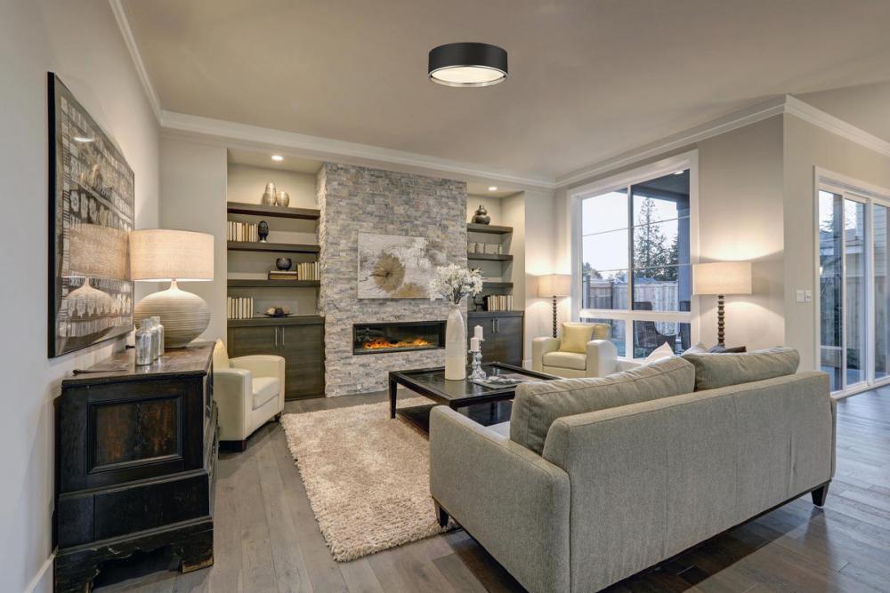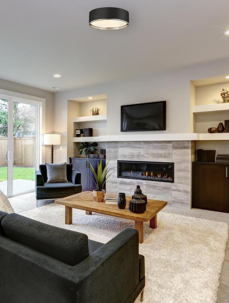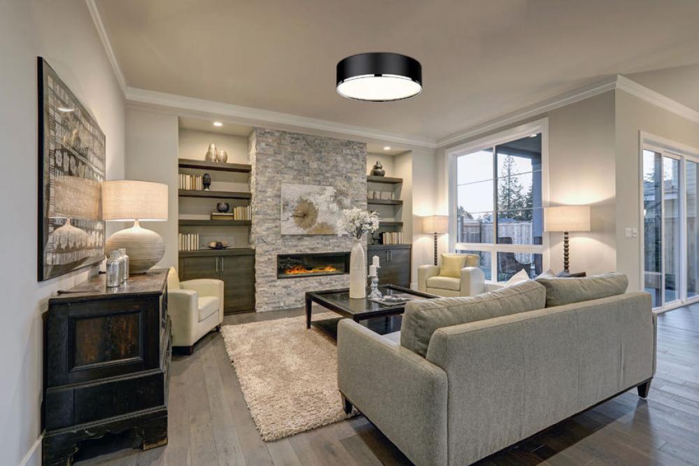 Bold and modern defines this flush mount, which features a two toned metal shade and stepped diffuser. Its bold but understated style makes this a versatile modern ceiling light fixture for any room in your home.
