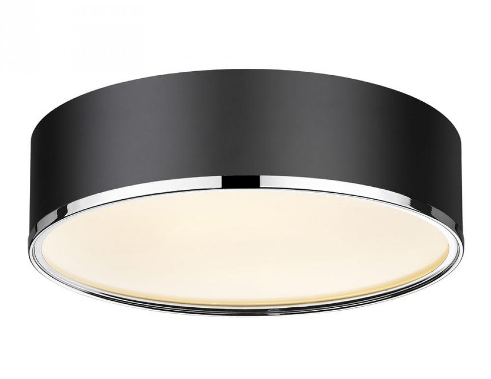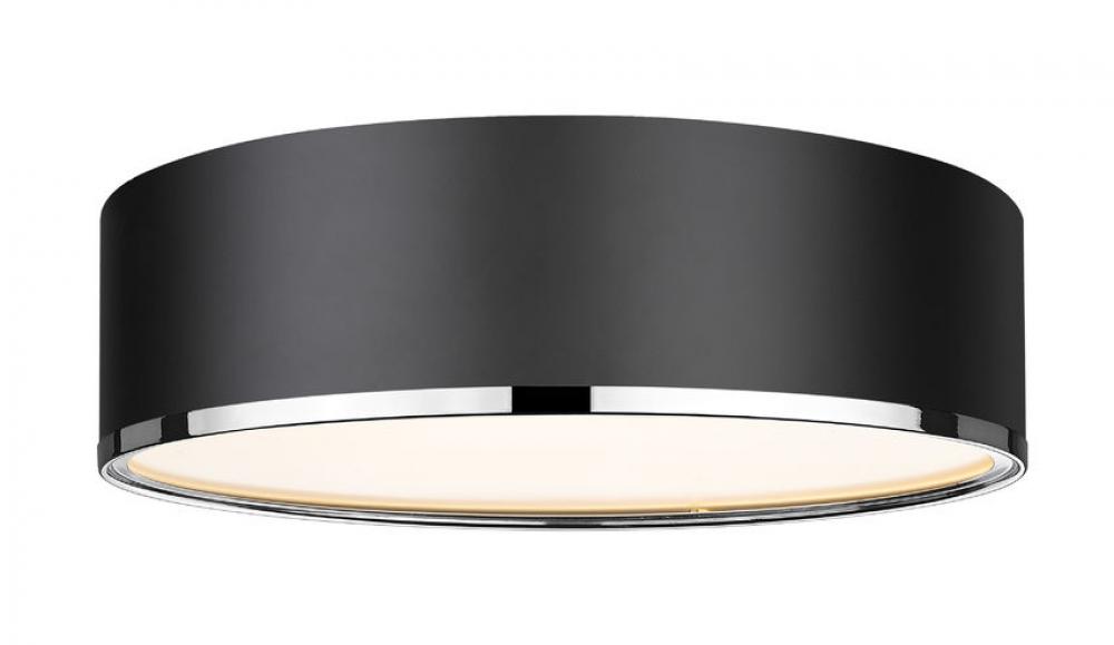 Its easy to make a contemporary statement with this four-light flush mount fixture. Four bulbs make for maximized illumination in your space. The matte black shade is designed from steel with an eye-catching chrome trim, offering the perfect pick-me-up for small foyers, hallways, home offices, and more.
