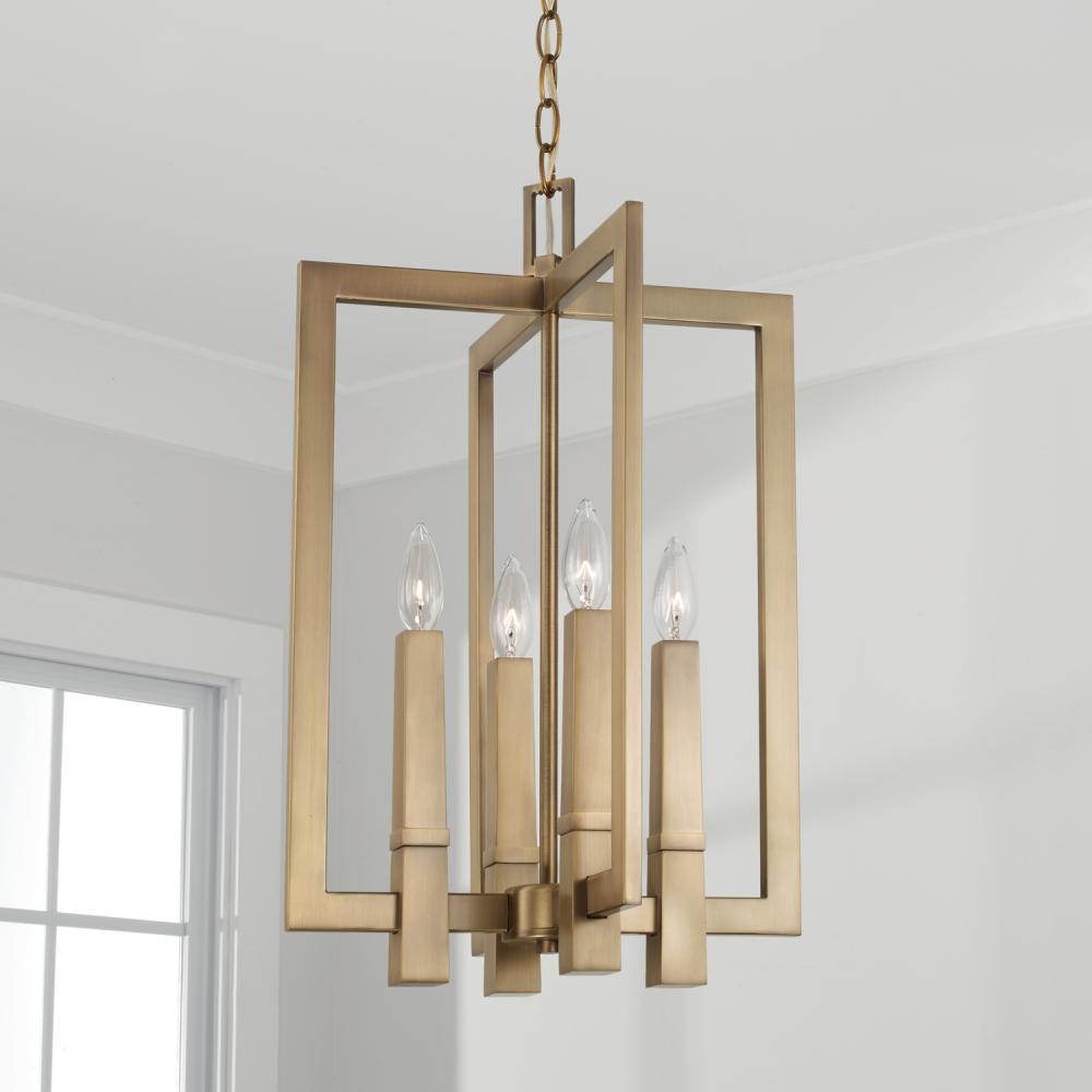 14"W x 22"H 4-Light Foyer in Aged Brass
