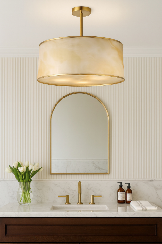 4 Light Incandescent Pendant, Aged Brass w/ Marble Alabaster