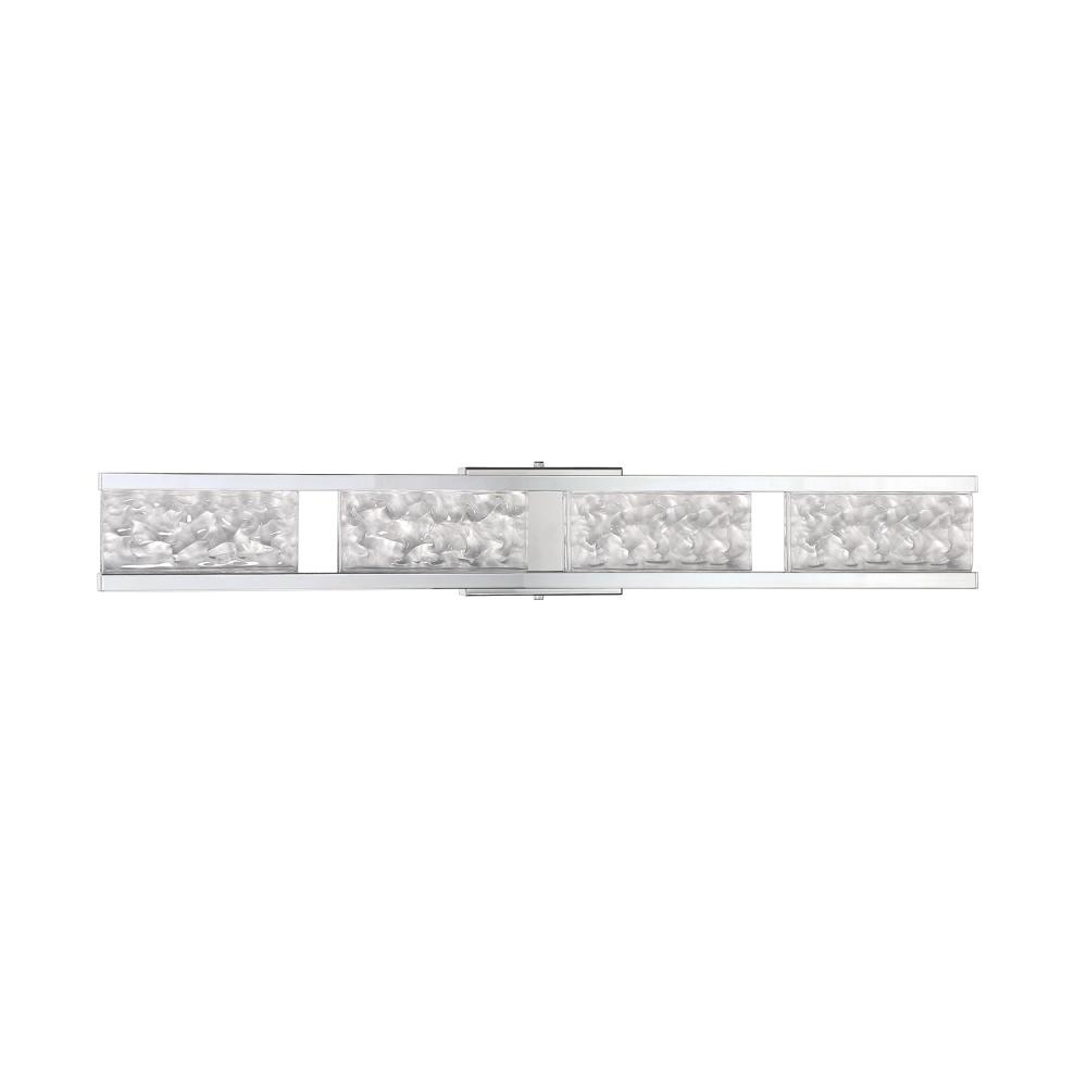 CALLAVIO 4-Light Linear LED Bath & Vanity Light in a Chrome finish featuring Frosted Fossilized Ice Glass