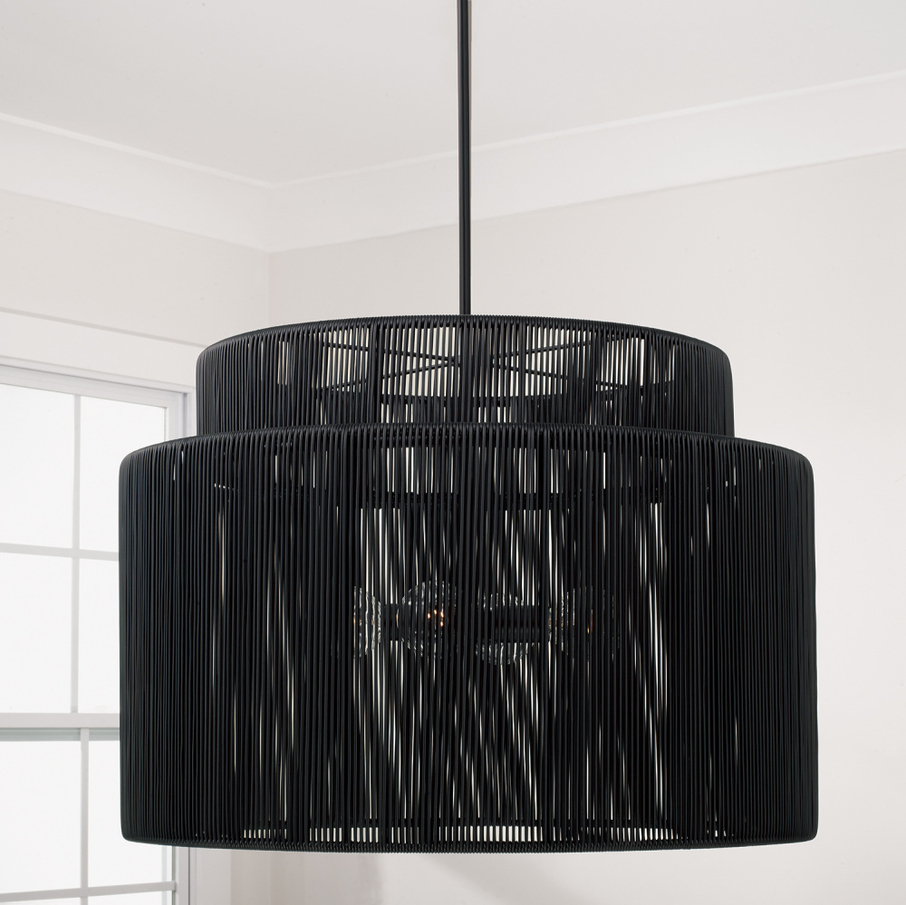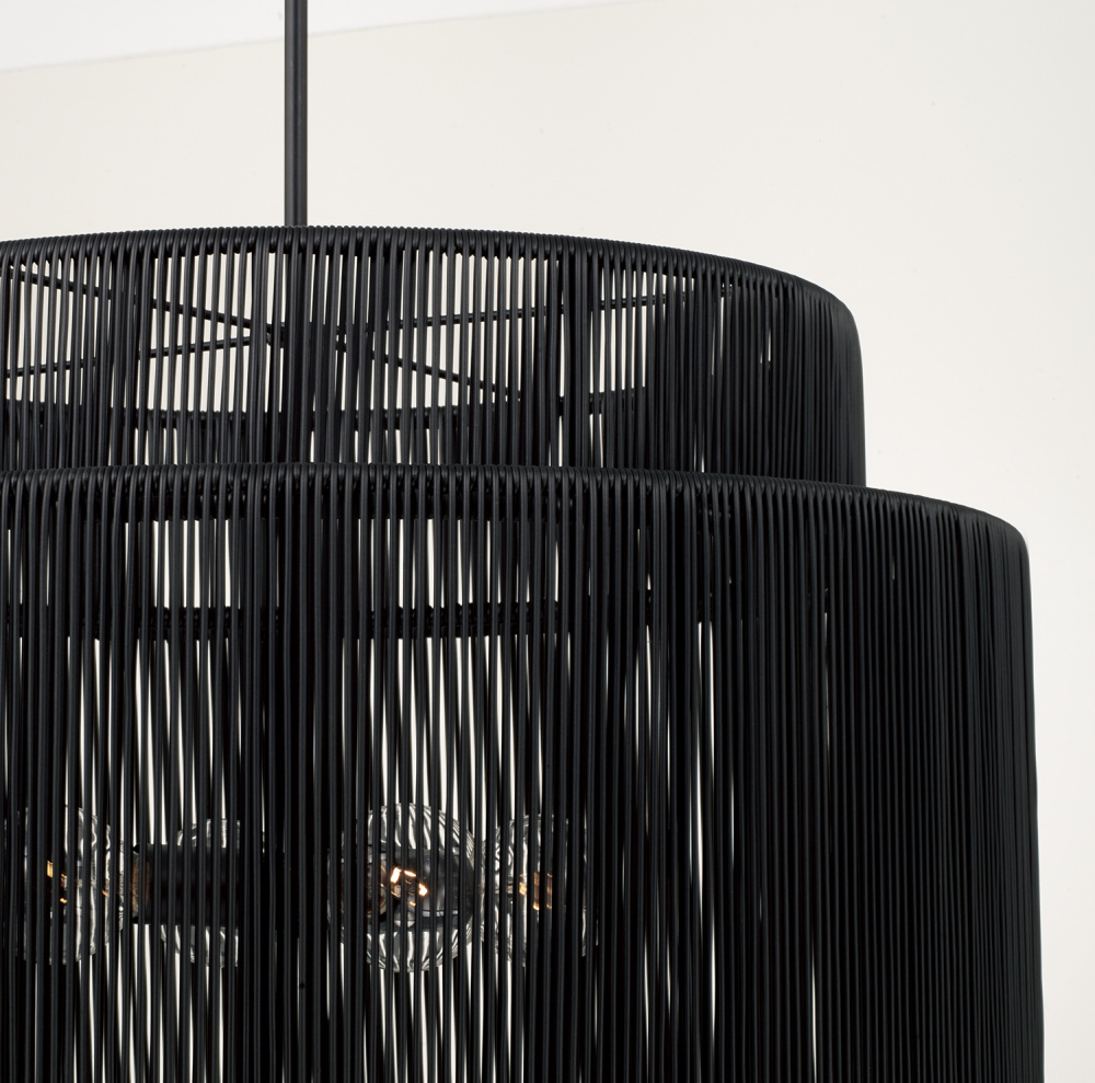 DETAILS: Paired with a Matte Black finish, the weather-resistant hand-wrapped resin brings chic, versatile style to interior or exterior spaces.