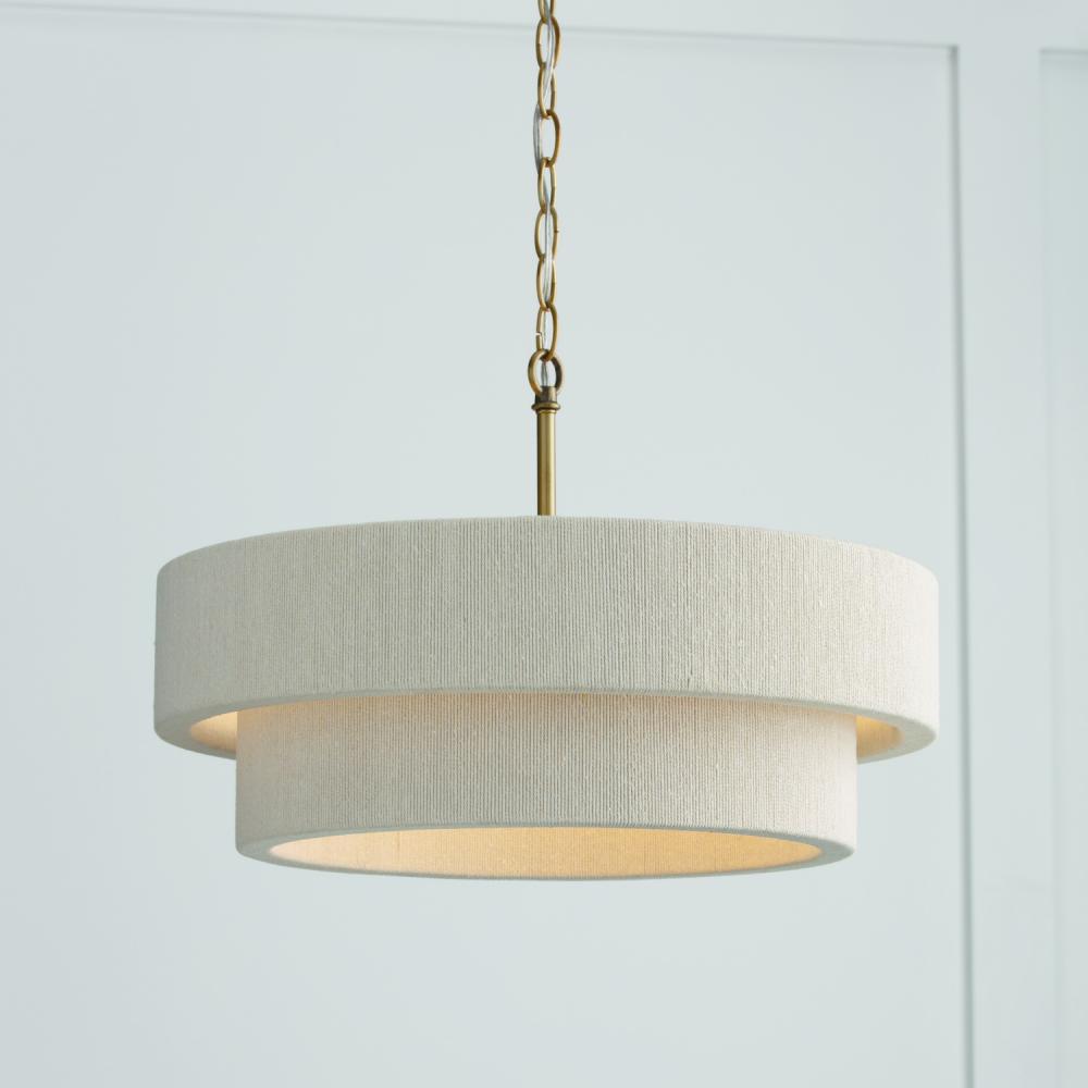 DETAILS: Hand-wrapped bleached natural rope. Variation may occur. Dual mount convertible optional small rod to hang as a semi-flush or 10 feet of chain to hang as a pendant are both included in the box.