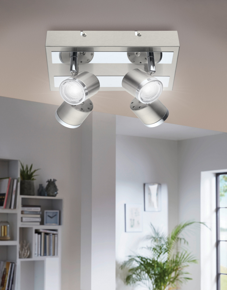 The Pierino 4-Light fixed square ceiling track light has a clean, modern style design. The chrome accentuates the matte nickel while reflecting the integrated LED light. The heads are movable as to change the direction of light where as needed.