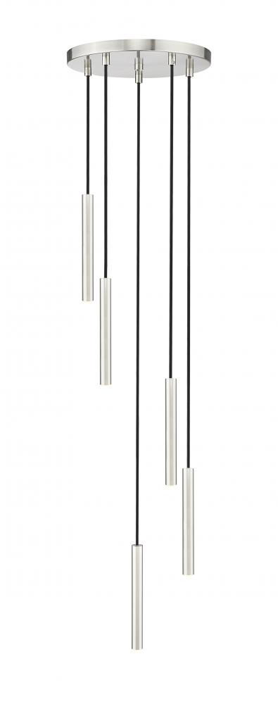 A staggered spiral silhouette brings artistry and elegance to this modern five-light chandelier. Its a perfect choice for a living or dining room, creating sculptural elegance with simple, familiar shapes that bring inviting flair. A brushed nickel finish pairs with integrated, dimmable LED lights, offering an inviting ambiance no matter the occasion.