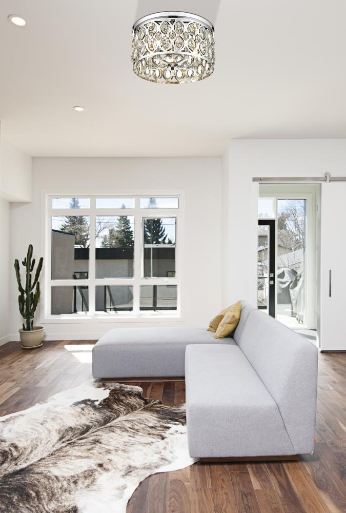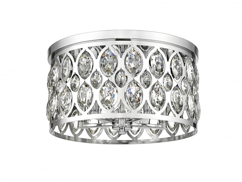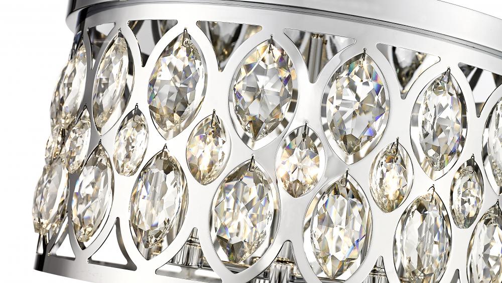 Decadence and glam flavor bring an unforgettable ambiance to this five-mount flush mount ceiling light. An extraordinary selection from the Dealey collection, this chic fixture is reserved for the most impactful of living spaces, adding the stunning look of crystal elements to an openwork metal frame with a chrome finish. Five lights infuse suitable ambient lighting for a kitchen, dining room, or foyer, capturing the palatial feel of a classic.