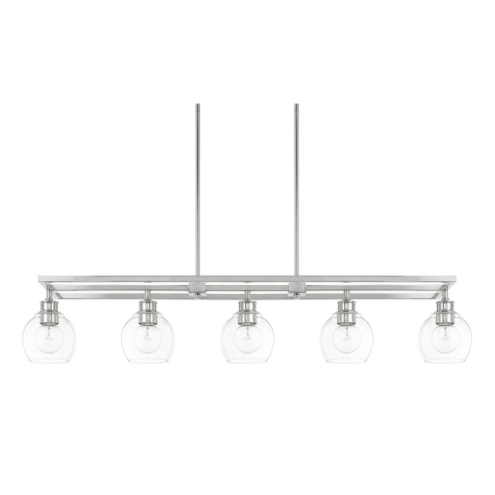 Great For Lighting Up A Breakfast Bar, Kitchen Island Or Dining Table, The Mid-Century 5-Light Island Offers Tasteful Task Lighting. Sleek Lines Paired With Rounded Glass And A Polished Nickel Finish Complete The Minimalistic Design.