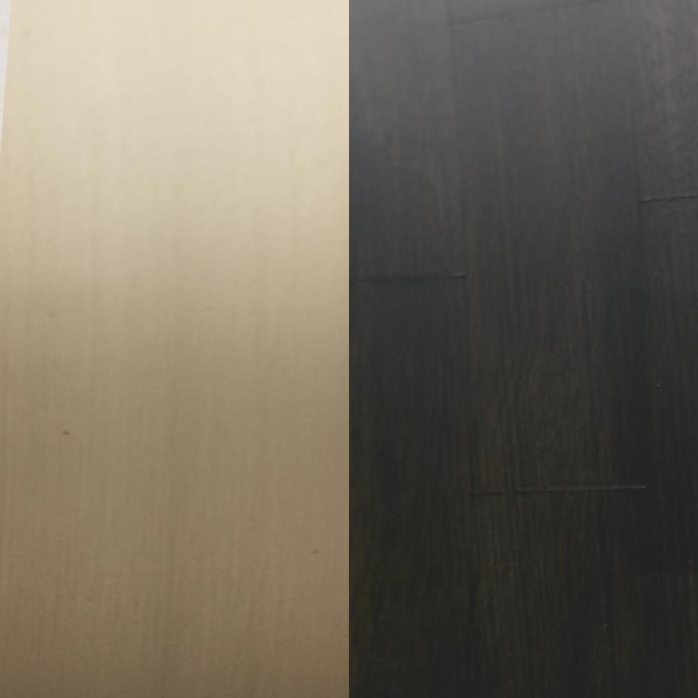 FINISH: A mixed-material finish of natural mango wood with a black wash stain paired with the slightly muted honey-gold tone of Matte Brass.